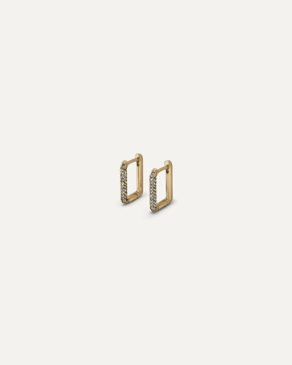 Orecchini Irene Oro Orecchini a cerchio squadrato con zirconi pavè