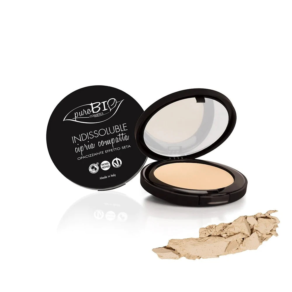 Prelevare un po’ di cipria con il pennello n. 01, applicare prima nelle zone che tendono a lucidarsi e poi procedere sul resto del viso.