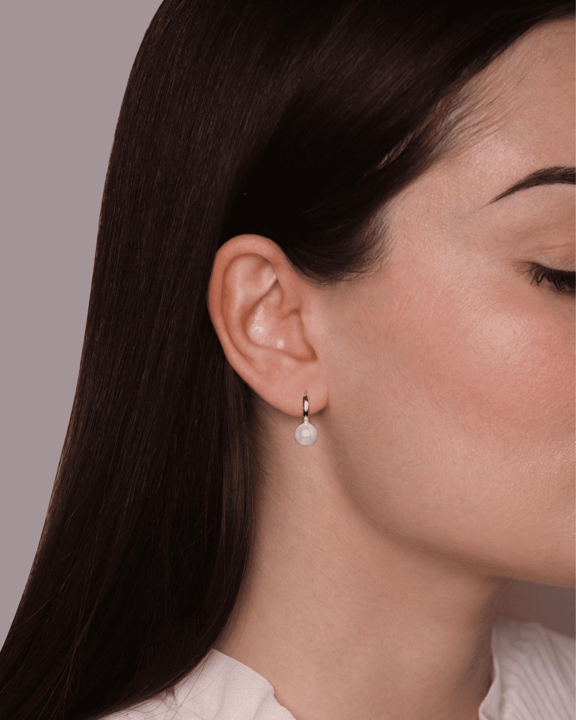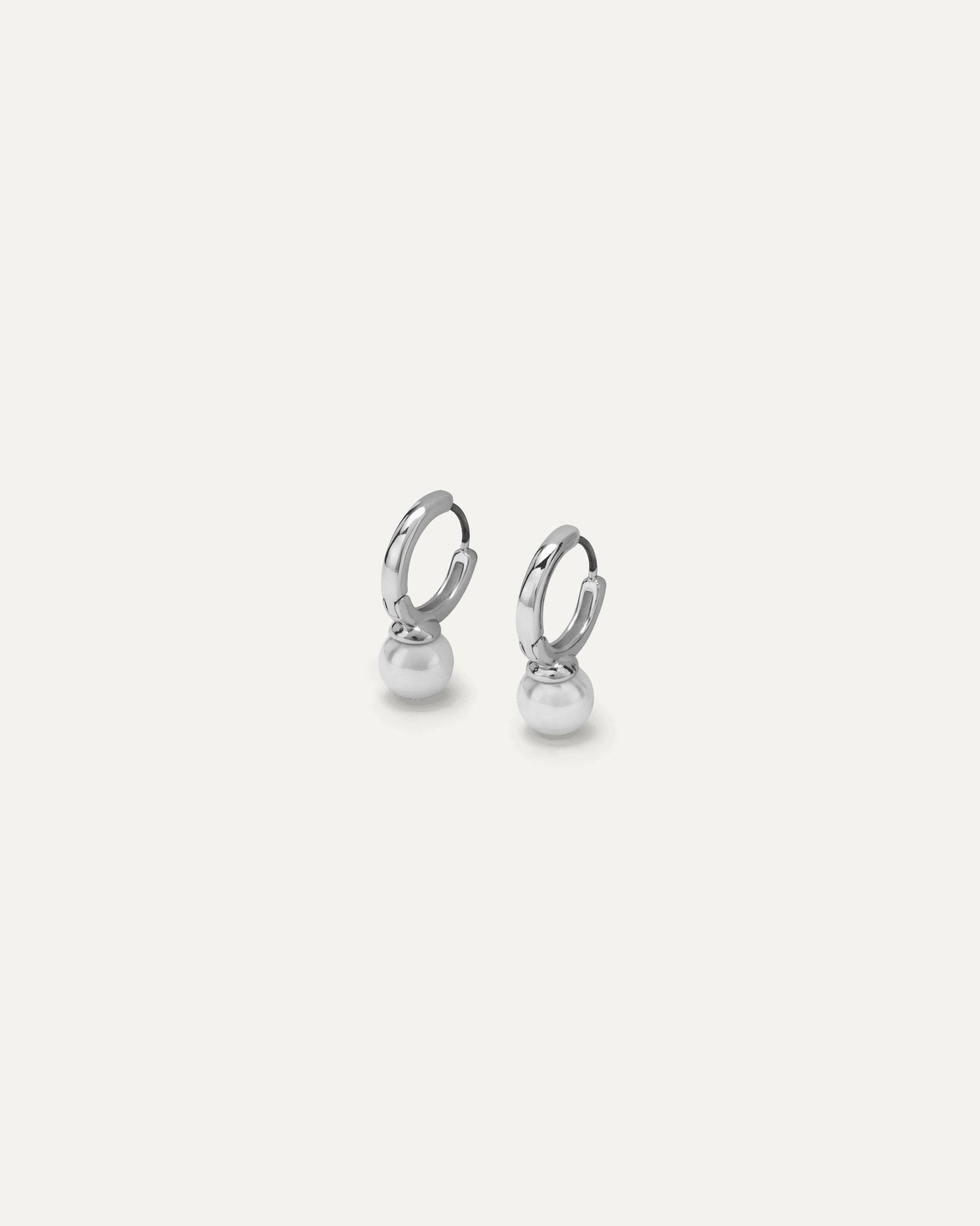 Orecchini Carmen Argento Orecchino a cerchio piccolo con pendente a perla di conchiglia.
